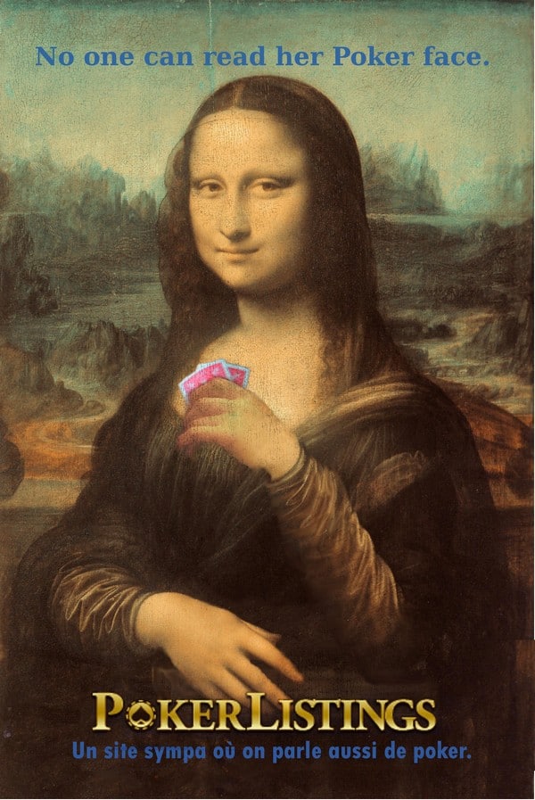 Prenons par exemple le détournement de la célèbre Joconde. Cette toile est réputée pour le visage impassible, le regard de côté et le sourire énigmatique de Mona Lisa. Il est impossible de deviner ses pensées et son état d’esprit…. Ce sont ces caractéristiques que Pokerlistings a choisi d’exploiter en lui plaçant des cartes en main et en affichant le slogan : « No one can read her Poker face ».